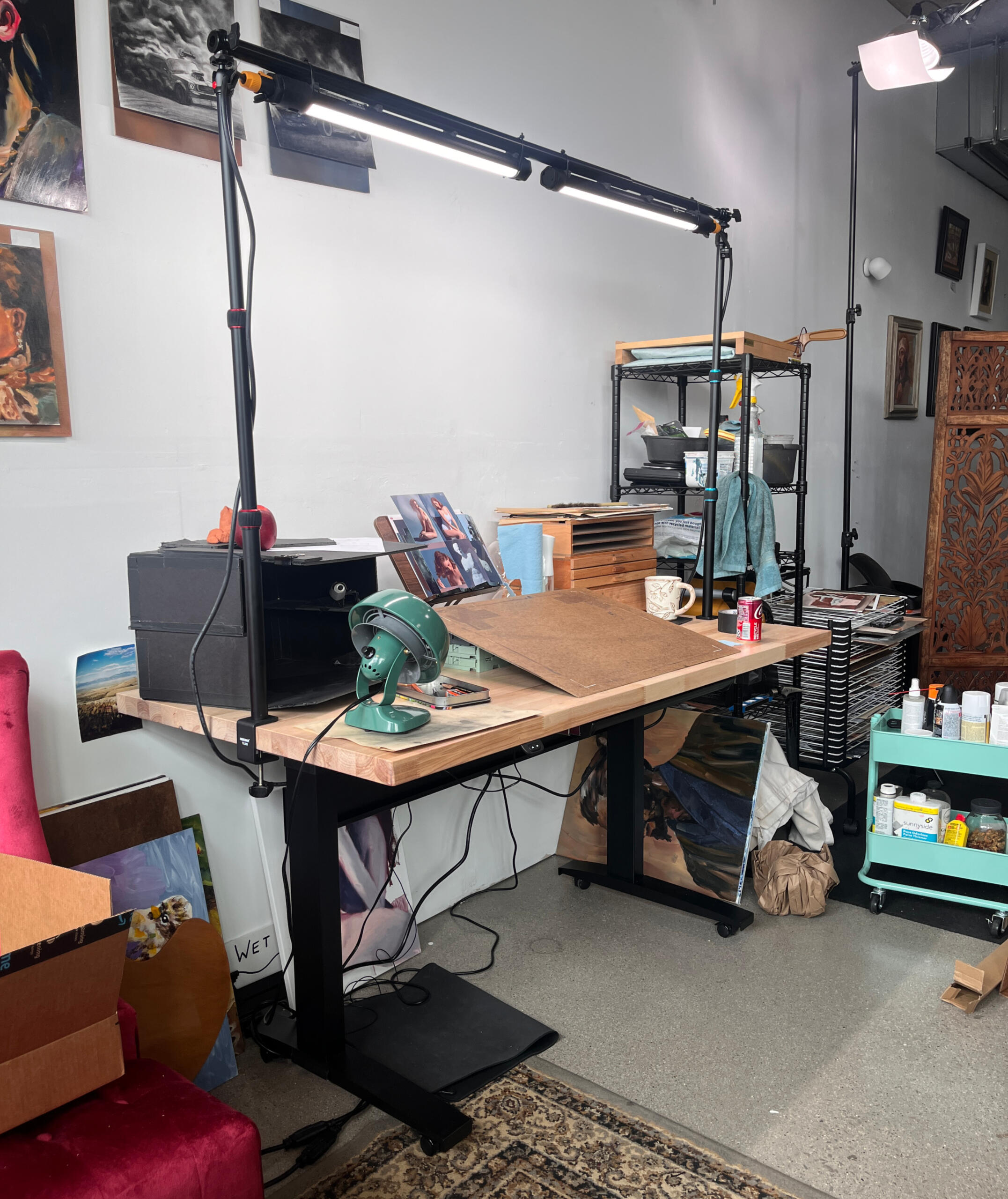 Have you been taking online courses, but struggling to see improvement in your art? Simply being in a 10/10 dedicated space, and being among people who've already made that journey, can see instant improvement in your art.With as little as $30 a month, you can have a dedicated space to drop in and work, hold works of art and art supplies, and set up large easels and workspaces that you couldn't do at home.